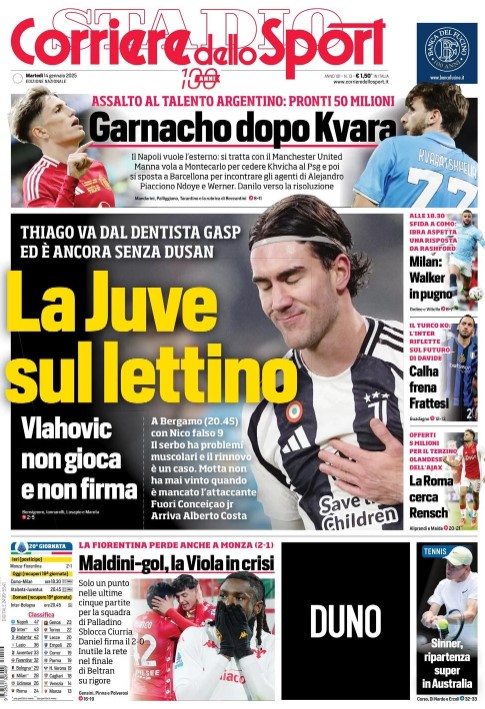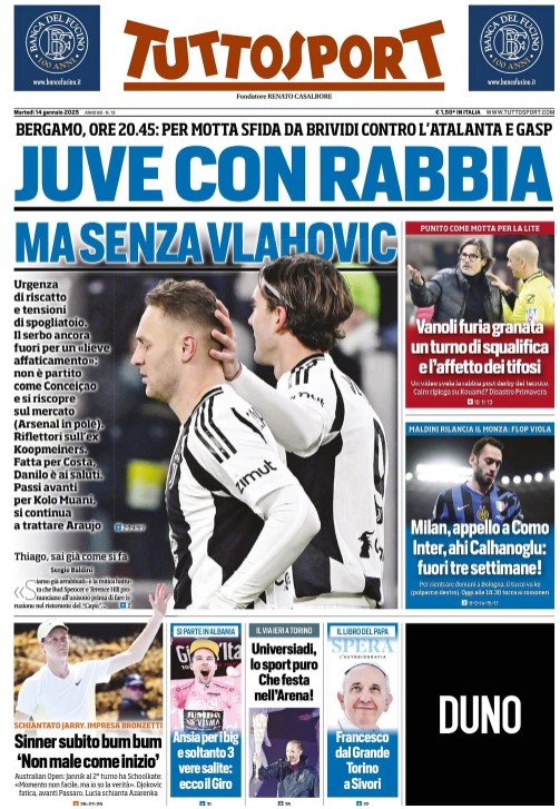Le prime pagine dei quotidiani sportivi di oggi: 14 gennaio 2025