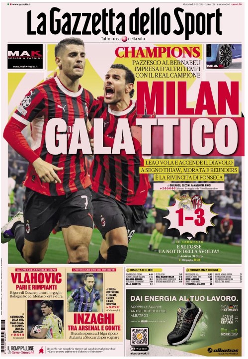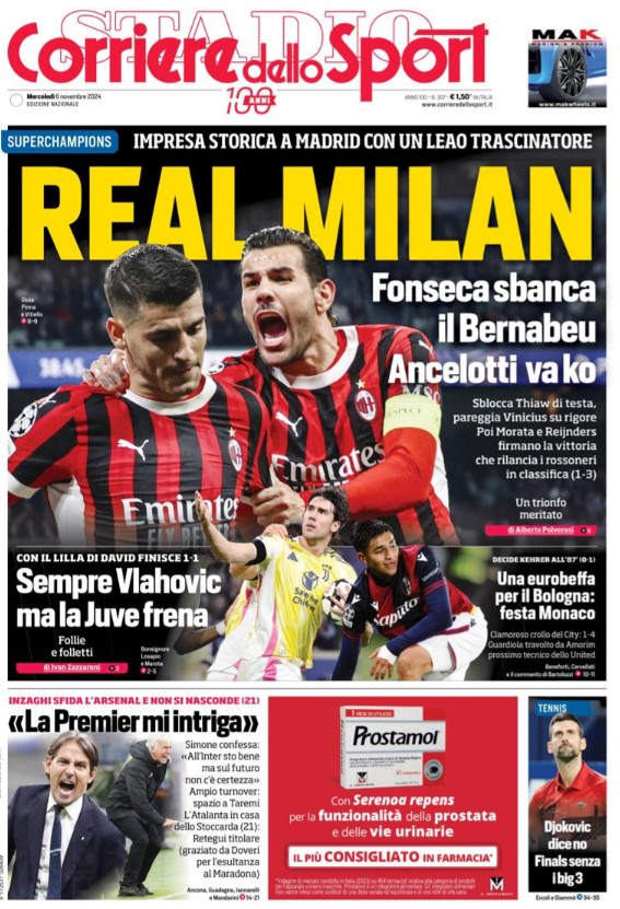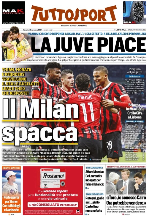 Le prime pagine dei quotidiani sportivi di oggi: 6 novembre 2024