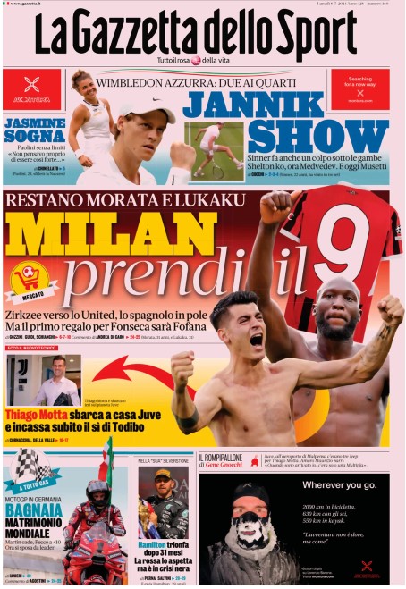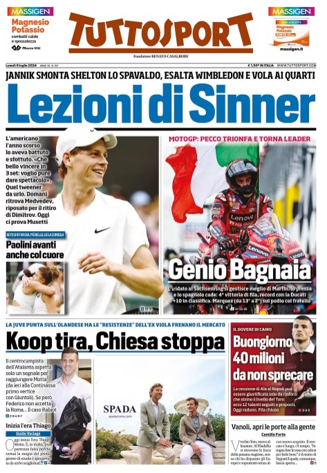 Le prime pagine dei quotidiani sportivi di oggi, 8 luglio 2024