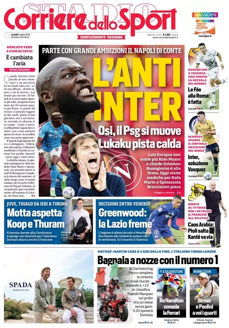 PRIME PAGINE QUOTIDIANI SPORTIVI – Ecco di seguito le prime pagine dei principali quotidiani sportivi in edicola oggi, lunedì 8 luglio 2024.